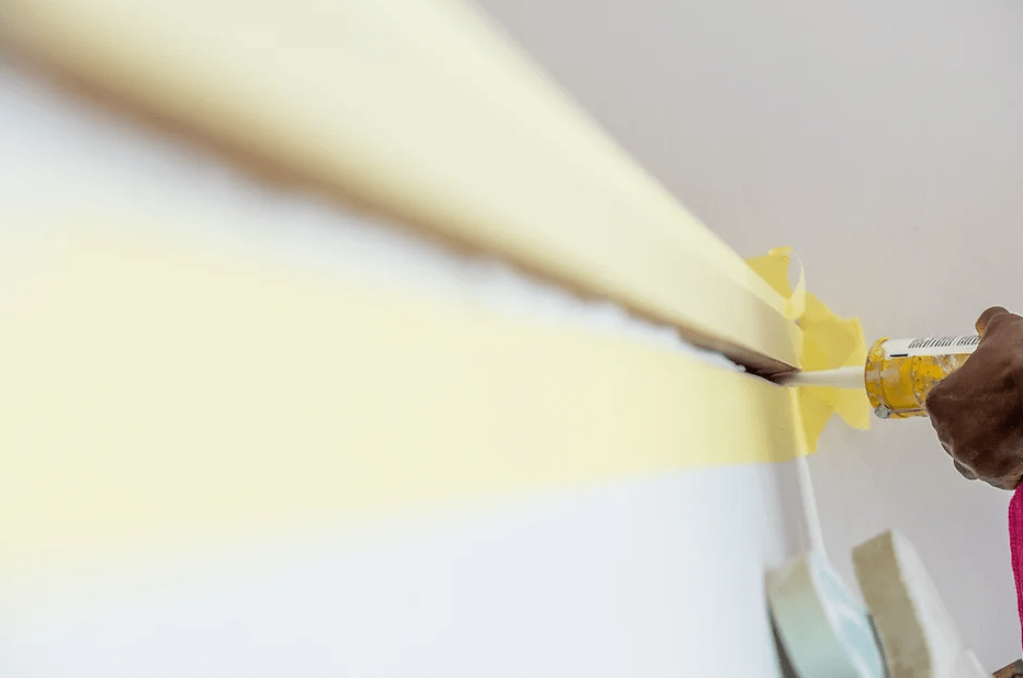 You’ll have to be extra careful when painting close to your ceiling. To ensure you don’t get any rogue paint on the ceiling, use masking tape as a barrier which can be easily peeled off when finished.
