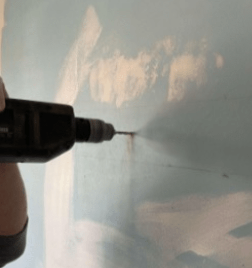 Next, you need to drill holes in the wall and insert wall plugs so your screws have something to grip onto.