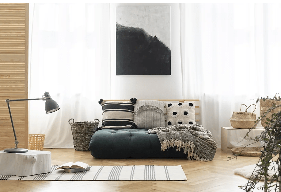 This style depends on a muted colour scheme. White, grey and black are interwoven seamlessly with natural colours like greens, browns and tan. This will give your living space a calm, clean and comfortable atmosphere.