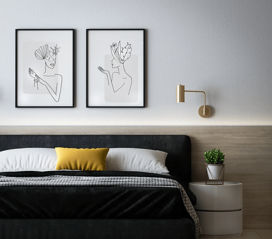 Scandinavian art makes use of patterns, black and white ink drawings, and more modern art prints. You can create your own Scandinavian art by printing and framing artistic black and white photographs, using simplistic decor pieces like flower vases, or incorporating light fixtures into the room’s decor.